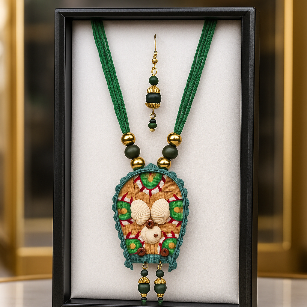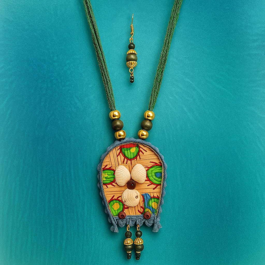 Centerpiece made with fabric art, embedded with conch shells and wooden beads