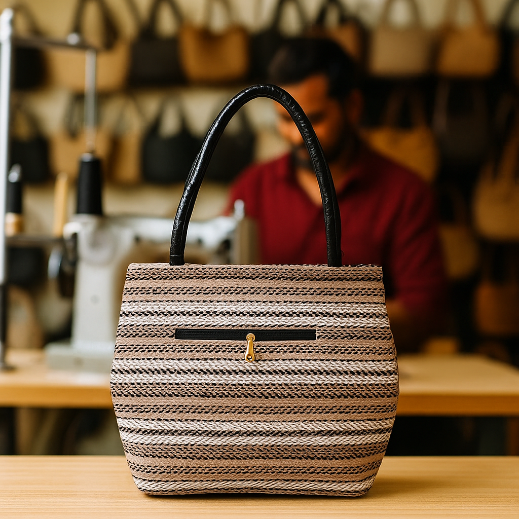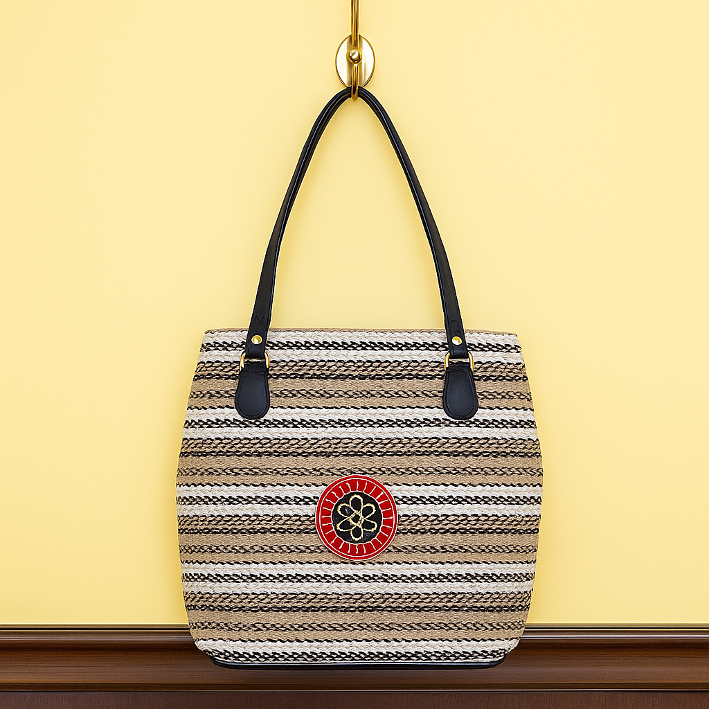Design: Horizontal wave-striped weave in earthy tones – beige and brown