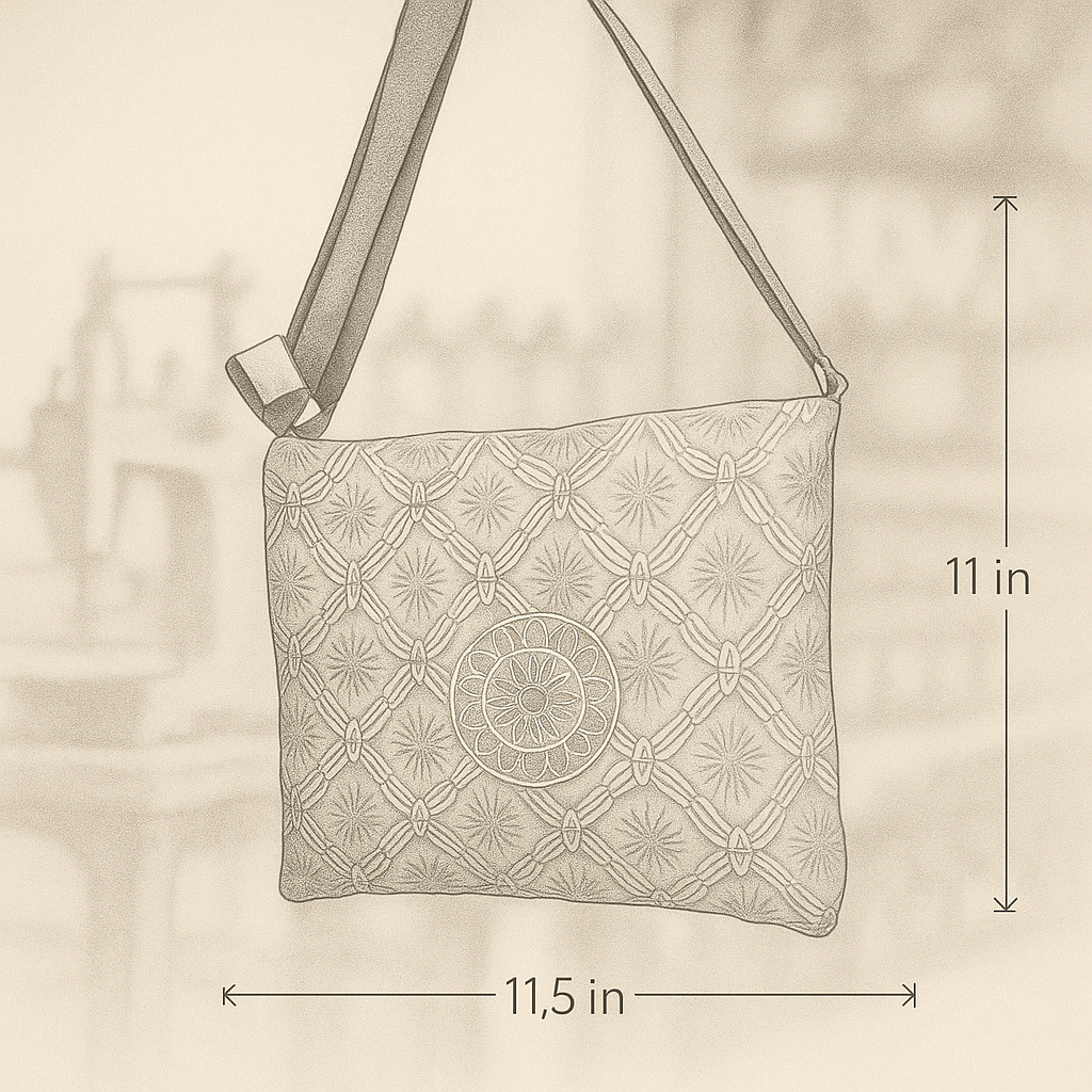 Strap: Adjustable and sturdy black strap for shoulder or crossbody use