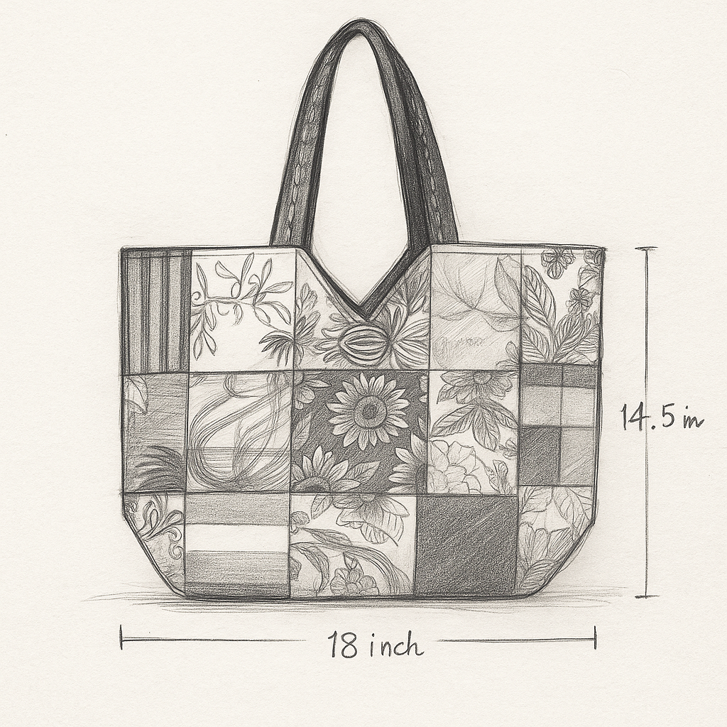 Design: Unique multicolor patchwork with floral, striped, and abstract prints