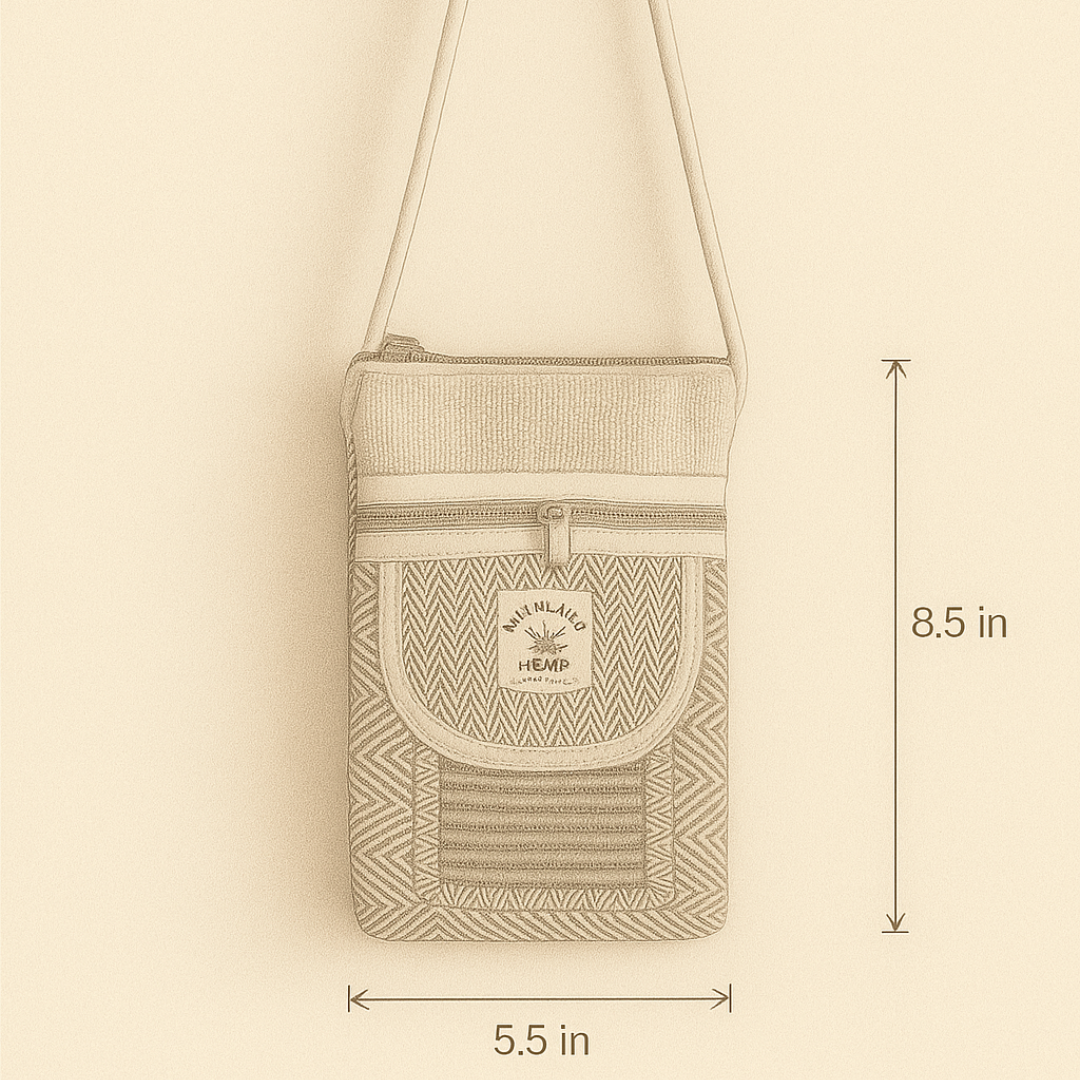 Strap: Adjustable hemp-cotton blend sling (not visible in photo)