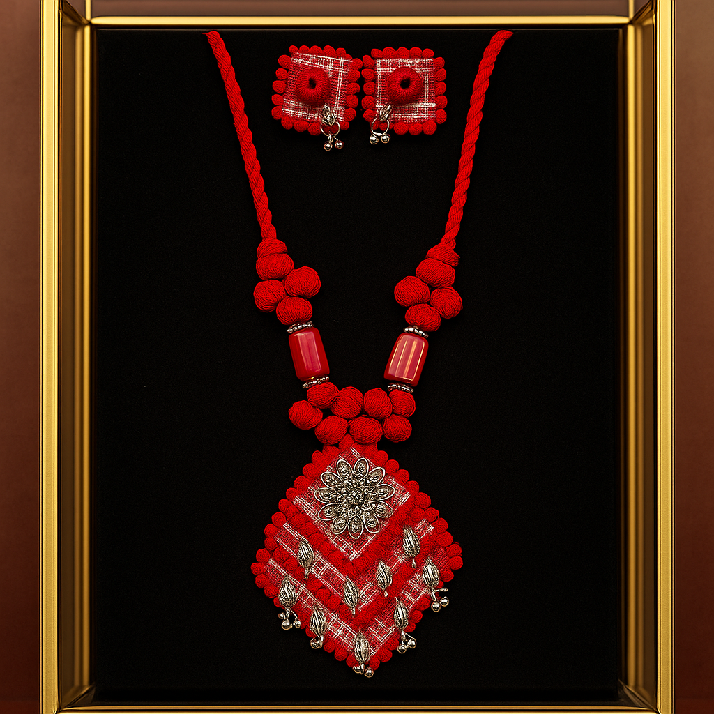 Color Combination: Vibrant red base with silver embellishments for a bold ethnic look.