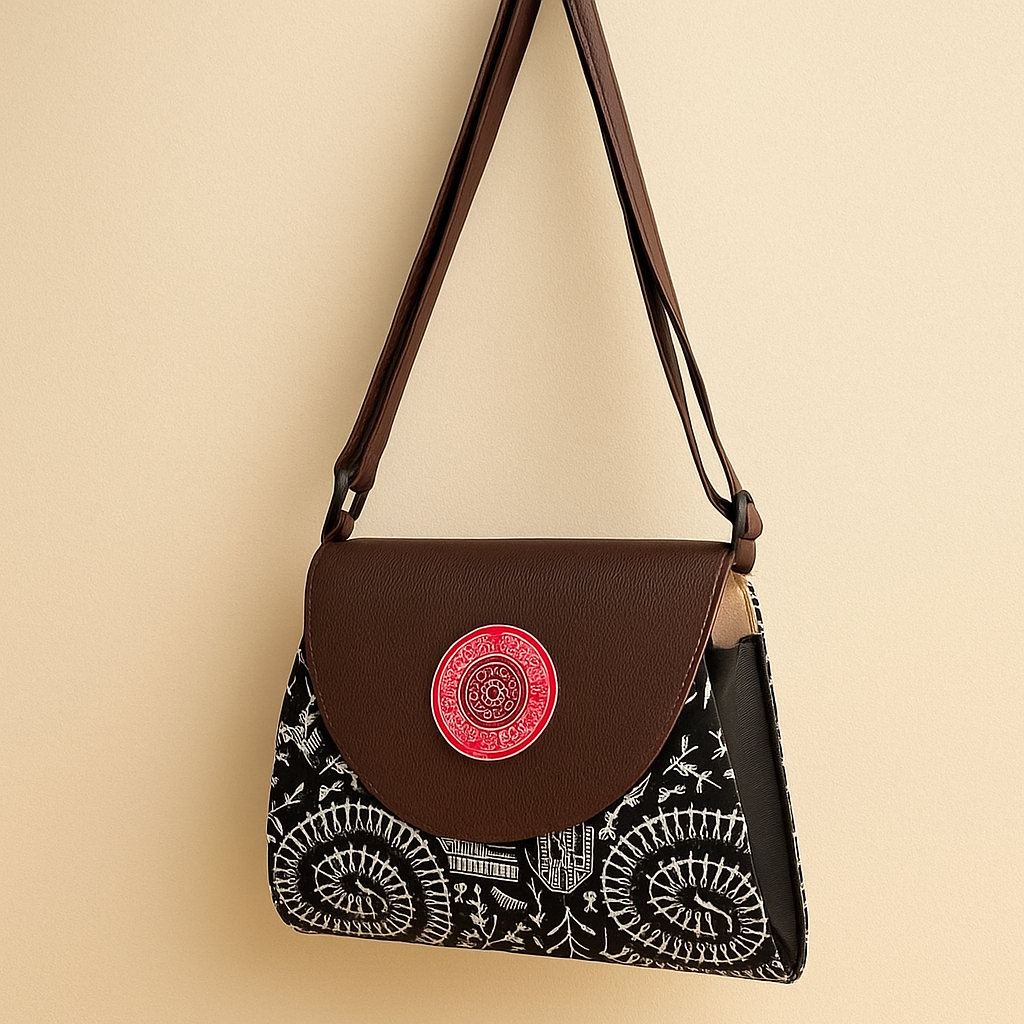 Craftsmanship: Artisanal piece combining fabric art with faux leather style
