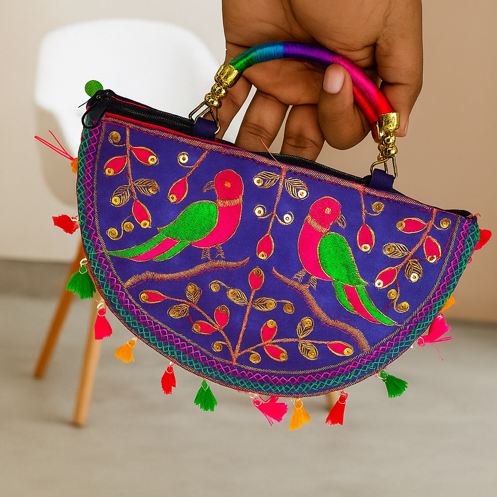 Material: Cotton canvas with multicolor thread embroidery